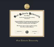 Oral Roberts University Diploma - BA (11/18 to Present) Frame with Medallion and Black and Gold Double Mat and Gold Embossing(Approximate frame size 17 x 19 inches)
