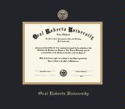 Oral Roberts University Diploma - Doc (11/18 to Present) Frame with Colored Medallion and Black and Gold Double Mat and Gold Embossing(Approximate frame size 19 x 22 inches)