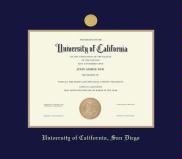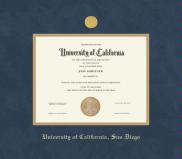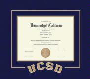 University of California, San Diego Diploma Frame with Medallion and Navy Blue and Gold Double Mat and Gold Embossing(Approximate frame size 17 x 19 inches)