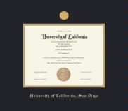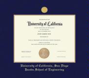 University of California- San Diego Diploma - School of Engineering Frame with Medallion and Navy Blue and Gold Double Mat and Gold Embossing(Approximate frame size 17 x 19 inches)