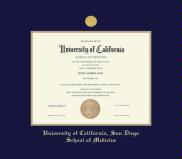 University of California- San Diego Diploma - School of Medicine Frame with Medallion and Navy Blue and Gold Double Mat and Gold Embossing(Approximate frame size 19 x 22 inches)