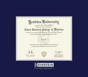 Albert Einstein College of Medicine Diploma - MD/PhD (2024 to Present) Frame with Navy Blue and Silver Double Mat and Silver Embossing(Approximate frame size 19 x 22 inches)