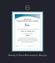 Society of NeuroInterventional Surgery Certificate - Fellow Status Membership Frame with Black and Sky Blue Double Mat and Silver Embossing(Approximate frame size 17 x 19 inches)