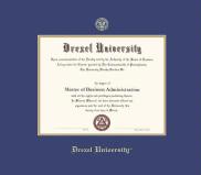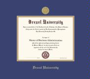 Drexel University Diploma - BA/MA Frame with Medallion and Royal Blue and Gold Double Mat and Gold Embossing(Approximate frame size 17 x 19 inches)