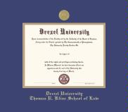 Drexel University Diploma - Law (11/14 to Present) Frame with Medallion and Royal Blue and Gold Double Mat and Gold Embossing(Approximate frame size 21 x 24 inches)