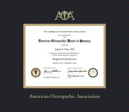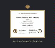 American Osteopathic Association Certificate Frame (certificates issued May 2017 and beyond) with Medallion and Black and Gold Double Mat and Gold Embossing(Approximate frame size 19 x 22 inches)