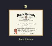 Pacific University Diploma - PhD (5/03 to Present) Frame with Black and Gold Double Mat and Gold Embossing(Approximate frame size 19 x 22 inches)