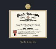 Pacific University Diploma - PhD Frame with Medallion and Black and Gold Double Mat and Gold Embossing(Approximate frame size 21 x 24 inches)