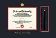 Indiana University (Bloomington) Diploma - BA/MA/PhD (Pre 6/22) Frame with Medallion and Tassel Cut-out and Black and Riviera Red Double Mat and Gold Embossing(Approximate frame size 17 x 23 inches)