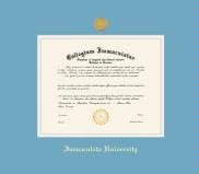 Immaculata University Diploma - BA/MA (10/02 to Present) Frame with Medallion and Blue and Cream Double Mat and Gold Embossing(Approximate frame size 17 x 19 inches)