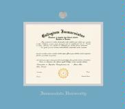Immaculata University Diploma - BA/MA (10/02 to Present) Frame with Medallion and Sky Blue and Silver Double Mat and Silver Embossing(Approximate frame size 17 x 19 inches)