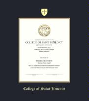 College of Saint Benedict Diploma (4/07 to Present) Frame with Medallion and Black and Gold Double Mat and Gold Embossing(Approximate frame size 17 x 14 inches)