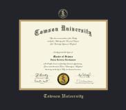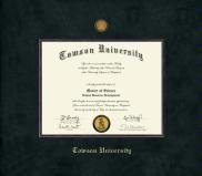 Towson University Diploma Frame with Enameled Medallion and Black and Gold Double Mat and Gold Embossing(Approximate frame size 19 x 22 inches)