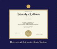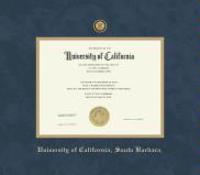 University of California- Santa Barbara Diploma Frame with Medallion and Navy Blue and Gold Double Mat and Gold Embossing(Approximate frame size 17 x 19 inches)