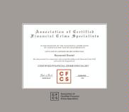 Association of Certified Financial Crime Specialists Certificate (8/21 to Present) Frame with Paloma Mat and Black Embossing(Approximate frame size 17 x 19 inches)