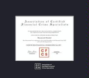 Association of Certified Financial Crime Specialists Certificate (Pre 8/21) Frame with Black Mat and White embossed seal(Approximate frame size 19 x 22 inches)