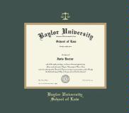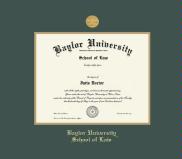 Baylor University Law Diploma (Spring 2000 to Present) Frame with Green and Gold Double Mat and Gold Embossing(Approximate frame size 19 x 22 inches)