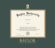 Baylor University Diploma (2000 to Present) with wordmark seal Frame with Green and Gold Double Mat and Gold Embossing(Approximate frame size 19 x 22 inches)