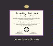 Abilene Christian University Diploma Frame with Medallion and Black and Purple Double Mat and Gold Embossing(Approximate frame size 17 x 19 inches)