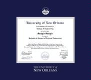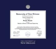 University of New Orleans Diploma Frame with Navy Blue and Silver Double Mat and Silver Embossing(Approximate frame size 17 x 19 inches)