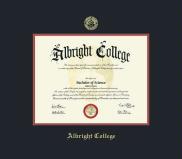 Albright College Diploma with Gold Medallion Frame Featuring a Black and Red Double Mat with Gold Embossing(Approximate frame size 19 x 22 inches)