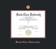 Santa Clara University Law/Doc of Education Diploma Frame with Medallion and Black and Red Double Mat and Gold Embossing(Approximate frame size 19 x 22 inches)