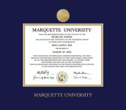 Marquette University Diploma (2022 to Present) Frame with Medallion and Navy Blue and Gold Double Mat and Gold Embossing(Approximate frame size 17 x 19 inches)