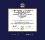 Marquette University Diploma (2022 to Present) Frame with Navy Blue and Gold Double Mat and Gold Embossing(Approximate frame size 17 x 19 inches)