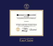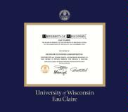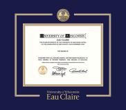 University of Wisconsin - Eau Claire Diploma (7/25 to Present) Frame with Navy Blue and Gold Double Mat and Gold Embossing(Approximate frame size 17 x 19 inches)
