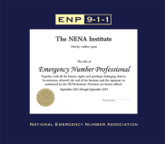 National Emergency Number Association Certificate - ENP Frame with Navy Blue Mat and Gold Embossing(Approximate frame size 17 x 19 inches)