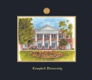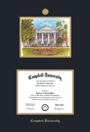 Campbell University Litho (10/05 to Present) Frame with Medallion and Black and Gold Double Mat and Gold Embossing(Approximate frame size 17 x 19 inches)