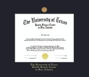 The University of Texas Health Science Center at San Antonio Diploma Frame with Medallion and Black Mat and Gold Embossing(Approximate frame size 19 x 22 inches)