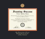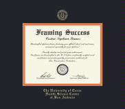 The University of Texas Health Science Center at San Antonio Diploma Frame with Black and Burnt Orange Double Mat and Gold Embossing(Approximate frame size 19 x 22 inches)