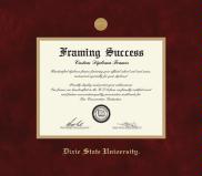 Dixie State University Diploma - All 8"h x 10"w (2/13 to 6/22) Frame with Medallion and Maroon Suede and Gold Double Mat and Gold Embossing(Approximate frame size 15 x 17 inches)