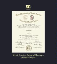 Medical University of South Carolina Diploma - Pharmacy (14"h x 11"w) Frame with Black Mat and Gold Embossing(Approximate frame size 19 x 22 inches)