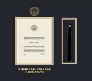 American College of Dentists Certificate Frame with Medallion and Tassel Cut-out and Black and Gold Double Mat and Gold Embossing(Approximate frame size 19 x 22 inches)