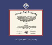 Georgia State University Diploma - PhD (10/22-Pres) & (Pre 9/24) Assoc/BA/MA Frame with Royal Blue and Red Double Mat and Silver Embossing(Approximate frame size 21 x 24 inches)