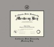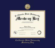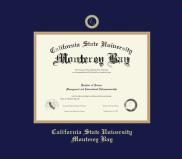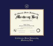 California State University Monterey Bay Diploma (7/18 to Present) Frame with Medallion and Navy Blue and Gold Double Mat and Gold Embossing(Approximate frame size 15 x 17 inches)