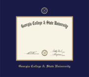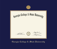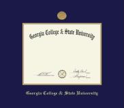Georgia College and State University Diploma - BA (Pre 2023) and (Pre 12/15) MA/Doc. with Medallion Frame Featuring a Navy Blue and Gold Double Mat with Gold Embossing(Approximate frame size 17 x 19 inches)