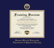 Samuel Merritt University Diploma - Physical Therapy (2021 to Present) Frame with Navy Blue and Gold Double Mat and Gold Embossing(Approximate frame size 17 x 19 inches)