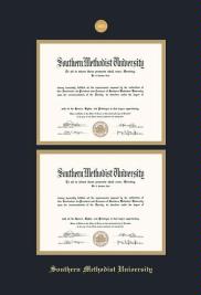 Southern Methodist University Double Diploma - MA/PhD and BA (Pre 12/25) Frame with Medallion and Black and Gold Double Mat and Gold Embossing(Approximate frame size 29 x 22 inches)