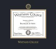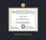 Whitman College Diploma Frame with Medallion and Black and Gold Double Mat and Gold Embossing(Approximate frame size 17 x 19 inches)