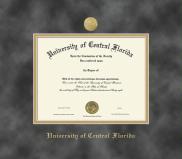 University of Central Florida Diploma - MA/PhD Frame with Medallion and Grey Suede and Gold Double Mat and Gold Embossing(Approximate frame size 19 x 22 inches)