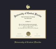 University of Central Florida Diploma - MA/PhD Frame with Black and Gold Double Mat and Gold Embossing(Approximate frame size 19 x 22 inches)