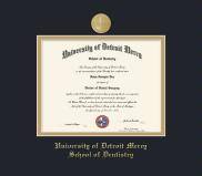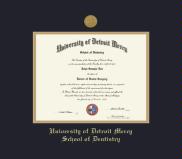 University of Detroit Mercy Diploma - Dental (12/16 to Present) Frame with Medallion and Black and Gold Double Mat and Gold Embossing(Approximate frame size 19 x 22 inches)