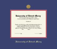 University of Detroit Mercy Diploma - BA/MA/PhD (8/12 to Present) Frame with Medallion and Royal Blue and Red Double Mat and Gold Embossing(Approximate frame size 17 x 19 inches)