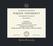 Purdue University Diploma - BA Frame with Dark Black Mat and Gold Embossing(Approximate frame size 15 x 17 inches)