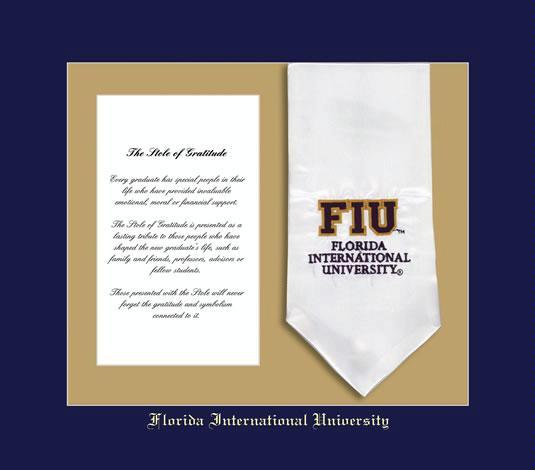 Florida International University Stole Frame Frame with Navy Blue and Gold Double Mat and Gold Embossing (Stole Not Included)