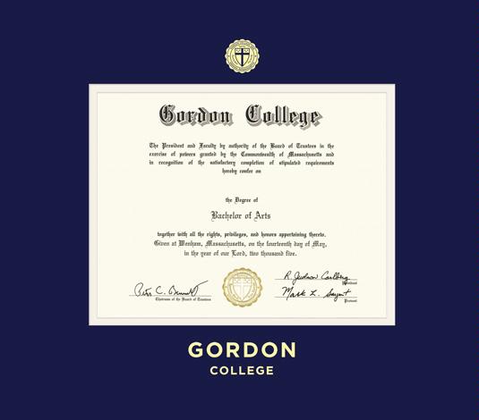 Gordon College Diploma Frame with Navy Blue and Cream Double Mat and Gold Embossing