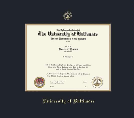 University of Baltimore Diploma Frame with Black and Gold Double Mat and Gold Embossing